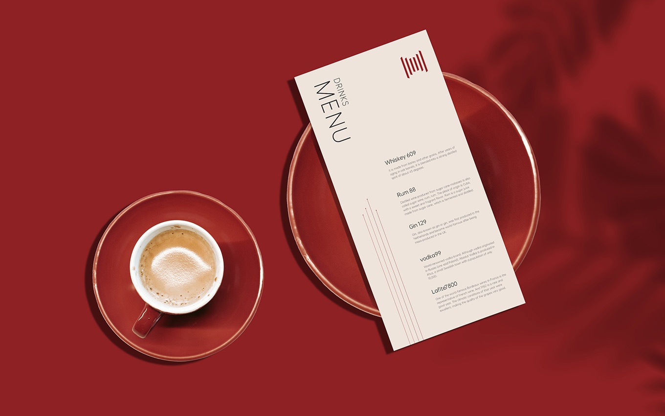 宣傳物料:如信封、房卡、菜單、酒吧酒單等,均使用統一的視覺語言,增強品牌沉浸感。